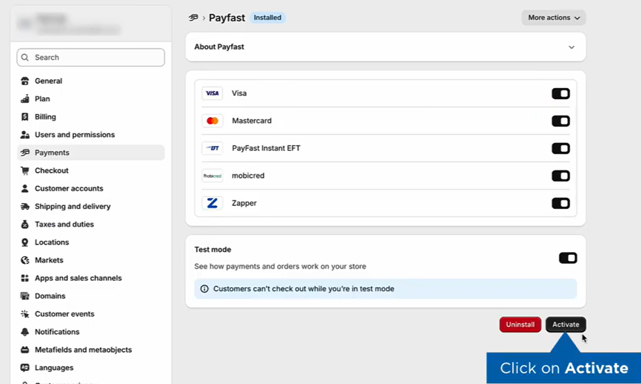 Step 2: Enable PayFast in Shopify