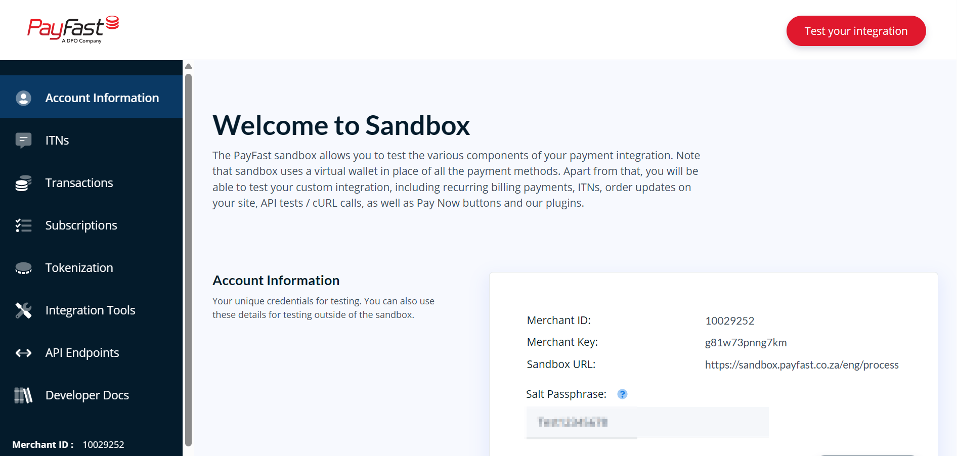 Your PayFast Merchant ID, Merchant Key, and Passphrase